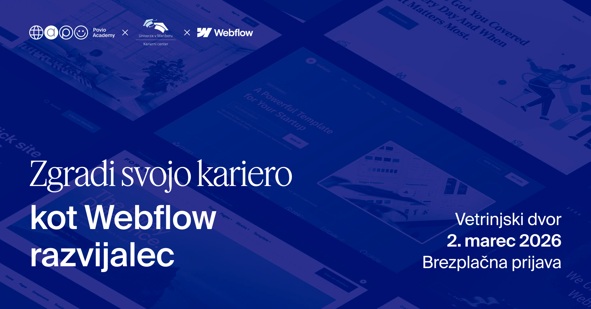 Digitalni svet se razvija hitreje kot kadarkoli prej, s tem pa nastajajo novi poklici, ki ne zahtevajo več klasične karierne poti. Na delavnici, ki jo soorganizirata Povio in Karierni center UM, bo predstavljeno orodje Webflow, ki omogoča sodobno oblikovanje in razvoj naprednih spletnih strani brez pisanja kompleksne kode. Študentje bodo izvedeli, kako lahko z lastno iniciativo, pravimi orodji in mentorsko podporo že danes začnejo graditi svoj portfolio ter naredijo prve korake v svet IT.